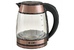 Параметры Объем 1,8 л Номинальная потребляемая мощность 1500 Вт Описание Чайник электрический предназначен для нагрева воды в бытовых и аналогичных условиях Закрытый нагревательный элемент из нержавеющей стали Корпус из термостойкого стекла Цвет: медный Вращение корпуса на 360° Отметка максимального и минимального уровня воды Внутренняя LED-подсветка Отсек для хранения шнура питания Автоматическое отключение при закипании Блокировка включения без воды