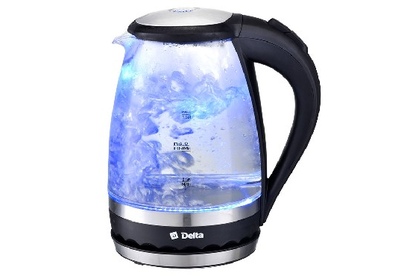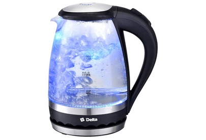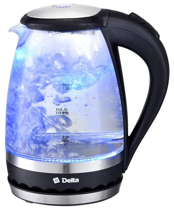 Макс. мощность 2200 Вт. Объем 1,5л. Закрытый нагревательный элемент из нерж. стали. Корпус из жаропрочного стекла. Вращение корпуса на 360°. Шкала уровня воды. Внутренняя LED-подсветка. Многоуровневая защита: автоматич. отключение при закипании, отключение при снятии чайника с базы, отключение при недостаточном количестве воды.