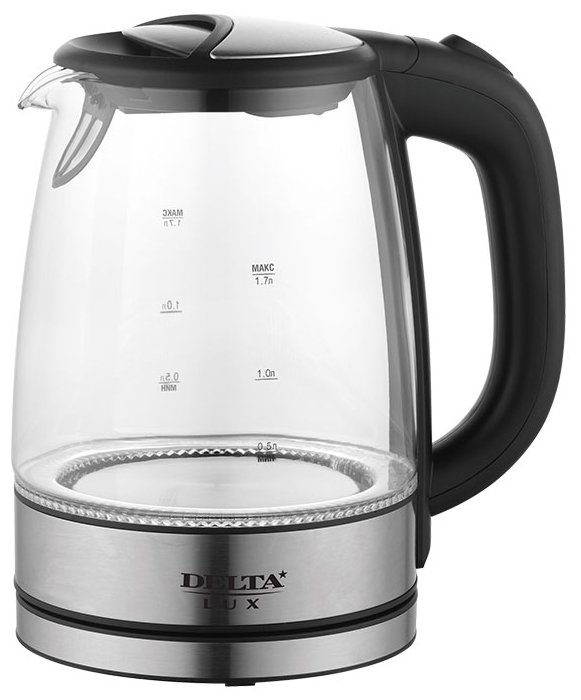 Объем 1,7 л Номинальная мощность 2200 Вт Описание Закрытый нагревательный элемент из нержавеющей стали Корпус из жаропрочного стекла Вращение корпуса на 360° Шкала уровня воды Внутренняя LED-подсветка Съемный фильтр Удобное хранение шнура Цвет: черный Многоуровневая защита: автоматическое отключение при закипании отключение при снятии чайника с базы отключение при недостаточном количестве воды