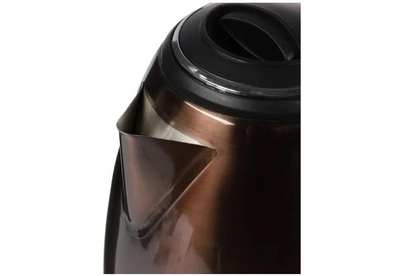 Объём: 1,8 л. Материал корпуса: нержавеющая сталь. Крышка: термостойкий, пищевой пластик. Мощность: 1500-1800 Вт. Автоотключение при закипании и отсутствии воды. Закрытый нагревательный элемент. Поворот на подставке на 360 градусов. Световой индикатор работы. Наличие места для хранения шнура Напряжение: 230 В, 50 Гц