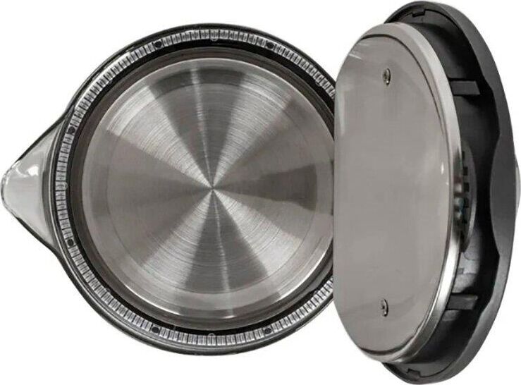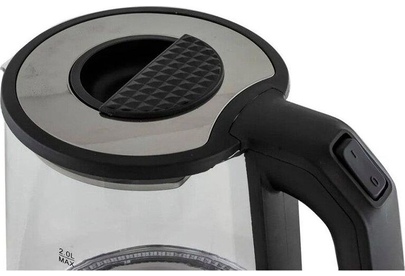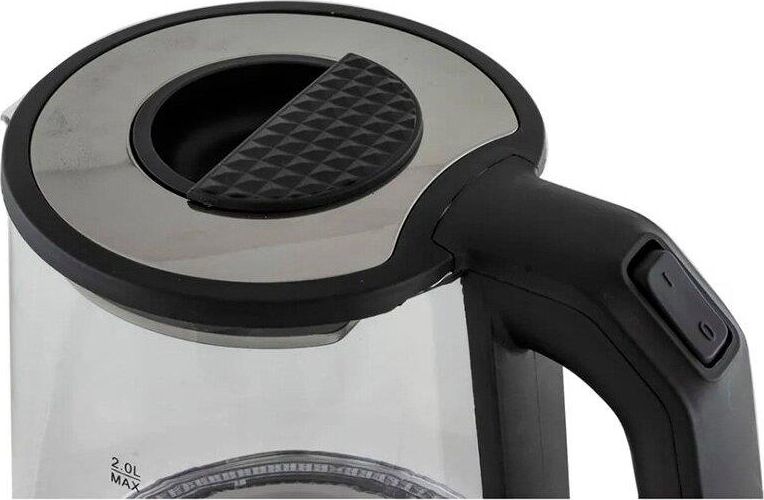 Чайник стеклянный, дисковый нагревательный элемент, емкость 2 литра, мощность 1500 Вт, светодиодная подсветка, автоматическое отключение при закипании, защита от включения без воды