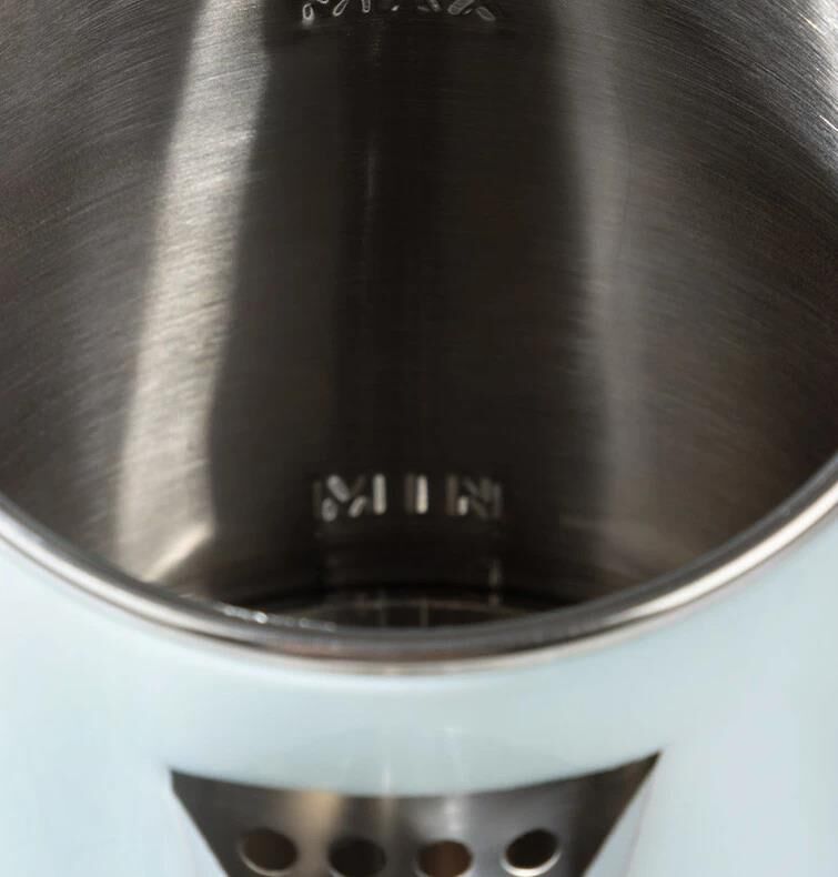 Объем 1,8 л Двойной корпус (нержавеющая сталь внутри, пластик снаружи) Закрытый нагревательный элемент из нержавеющей стали Поворот на подставке 360° Защита от работы без воды Автоматический выключатель Световой индикатор работы Место для хранения шнура Мощность 1500 Вт