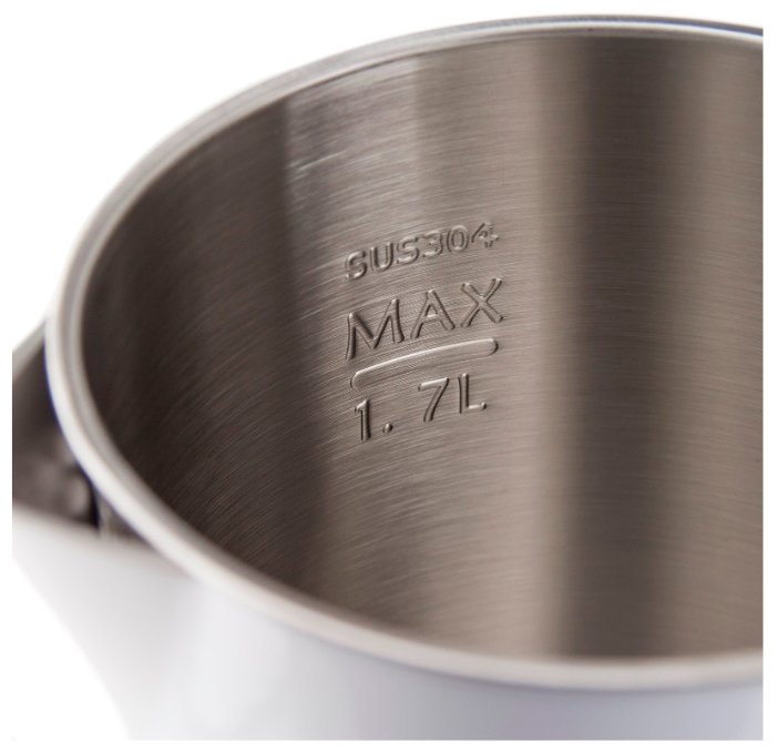 Чайник электрический 2000 Вт, 1,7л, скрытый нагревательный элемент, двойная стенка из нержавеющей стали 18/10 и пищевого пластика, автоотключение при закипании, автоотключение при отсутствии воды, указатель максимального уровня воды, индикатор работы, 220-240В ,50Гц