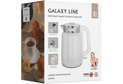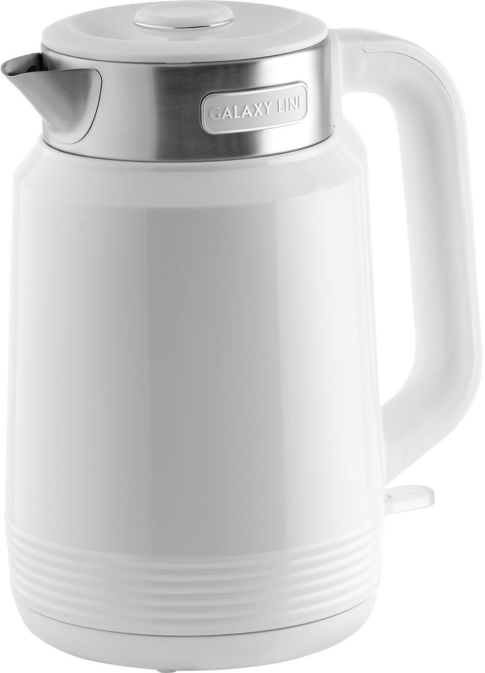 Чайник электрический Galaxy LINE GL 0364, белый, пластик, двойная стенка из нержавеющей стали AISI 304 и пищевого пластика, 2200 Вт, 1,7 л, LED индикатор работы, STRIX контроллер