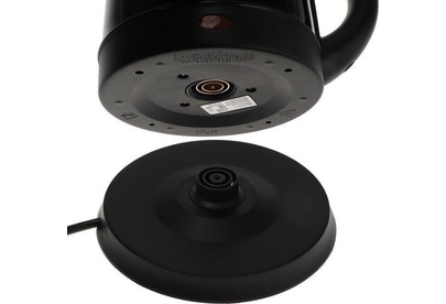 Объем 1,8 л. Корпус из нержавеющей стали. Закрытый нагревательный элемент из нержавеющей стали. Поворот на подставке 360°. Защита от работы без воды. Автоматический выключатель. Световой индикатор работы .Место для хранения шнура. Мощность 1500 Вт. Цвет черный.