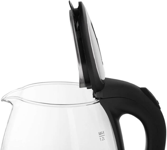 Объем 1,2 л Корпус из термостойкого стекла Шкала уровня воды Внутренняя подсветка Закрытый нагревательный элемент из нержавеющей стали Поворот на подставке 360° Защита от работы без воды Автоматический выключатель Место для хранения шнура Мощность 1500 Вт Цвет чёрный