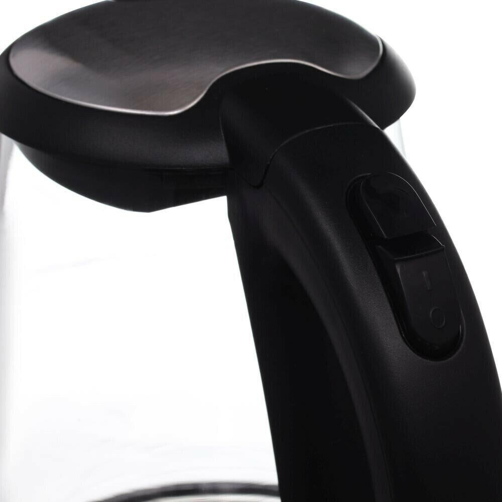 Общие характеристики Максимальный объем1.7 л Мощность2200 Вт Нагревательный элементскрытый Корпус Вес1 кг Цветчерный Материал корпусастекло/пластик Особенности Индикатор включенияДА Индикатор уровня водыДА Фильтр от накипиДА Автоматическое отключениеДА Кнопка открытия крышкиДА Защита от включения без водыДА Подсветка водыДА Подставка 360 градусовДА ОсобенностиВ чайнике используется высококачественное боросиликатное стекло, легкое, прочное, не темнеет и не окрашивается со временем. Красивая голубая LED подсветка украшает процесс закипания и оповещает о включении прибора. 2 года гарантии. Срок гарантии24 мес.