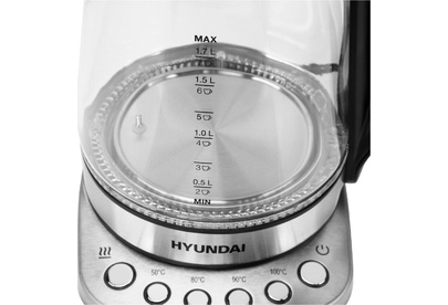 Мощность 2200 Вт Максимальный объем 1.7 л Нагревательный элемент скрытый Индикатор включения Индикатор уровня воды Фильтр от накипи Автоматическое отключение Регулировка температуры нагрева Температурные режимы 5 шт Кнопка открытия крышки Подставка 360 градусов Защита от включения без воды Поддержание температуры воды Материал корпуса стекло и металл и пластик Цвет серебристый Гарантия 24 мес.