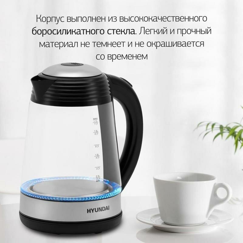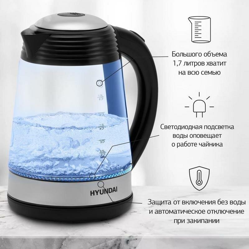 Мощность 2200 Вт Максимальный объем 1.7 л Нагревательный элемент скрытый Индикатор включения Индикатор уровня воды Фильтр от накипи Автоматическое отключение Кнопка открытия крышки Подставка 360 градусов Защита от включения без воды Подсветка воды Материал корпуса стекло Цвет черный Гарантия 24 мес.