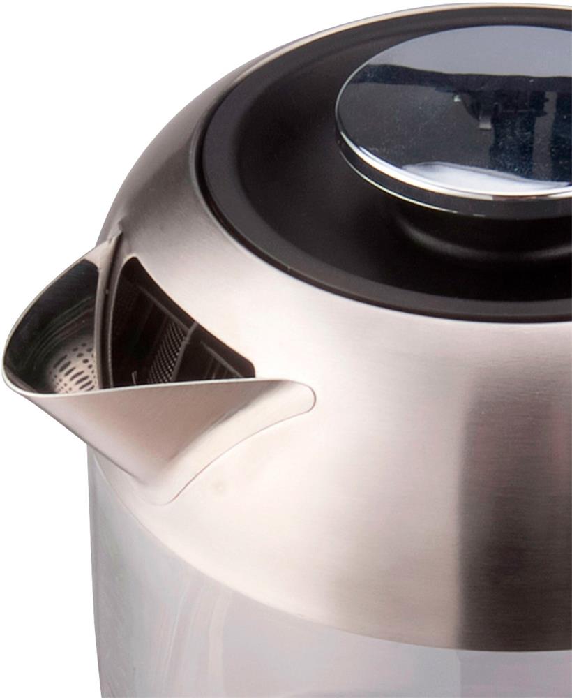 Мощность 2200 Вт Максимальный объем 1.8 л Нагревательный элемент скрытый контроллер VnQ с дополнительной гарантией 6 лет Индикатор включения Подсветка воды Автоматическое отключение Полностью съемная крышка Подставка 360 градусов Материал корпуса стекло Цвет черный, прозрачный Гарантия 24 мес.