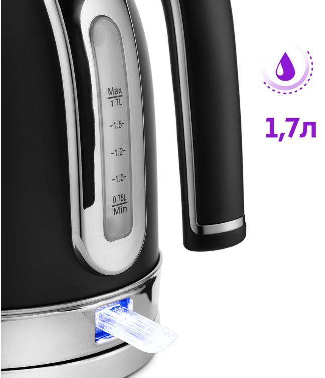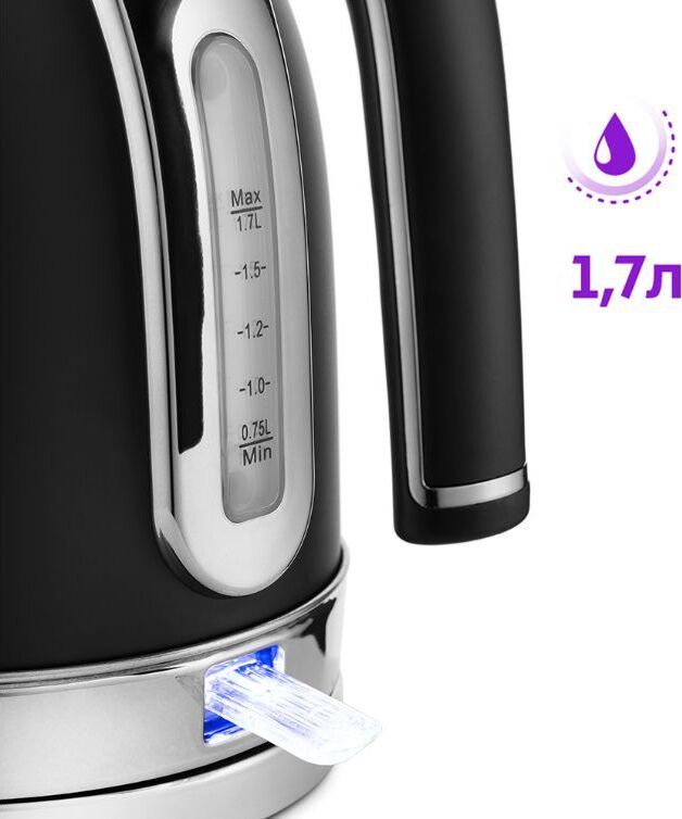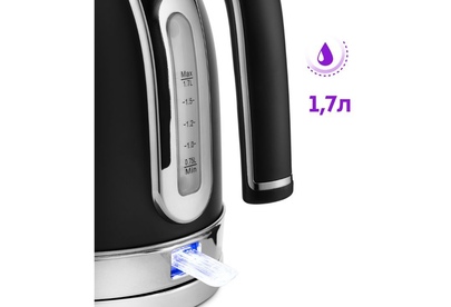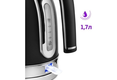 Максимальный объем 1.7 л. Потребляемая мощность 2150 Вт. Материал корпуса нержавеющая сталь. Тип управления механический. Фильтр от накипи Да. Отключение при отсутствии воды Да. Вес 1.3 кг.