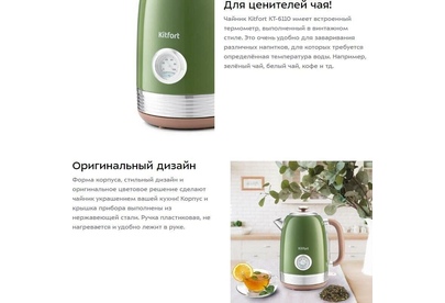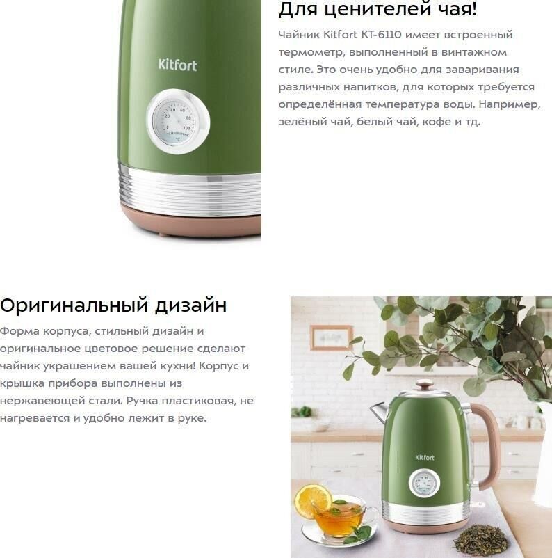 Чайник KITFORT KT-6110 зеленый (нержавеющая сталь)