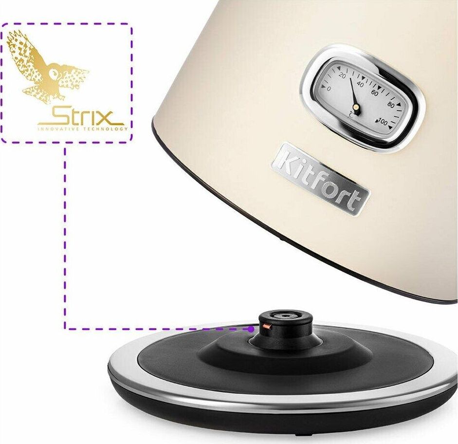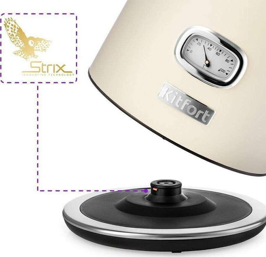 Мощность 2200 Вт. Максимальный объем 1.7 л. Нагревательный элемент скрытый. Индикатор включения есть. Фильтр от накипи есть. Автоматическое отключение есть. Подставка 360 градусов да. Защита от включения без воды есть. Материал корпуса нержавеющая сталь. Цвет бежевый.