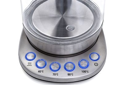 Электрический чайник с терморегулятором имеет 4 температурных режима. Также он оснащен функцией поддержания температуры. Температура воды контролируется встроенным термодатчиком. Чайник автоматически отключается при закипании и при снятии его с подст