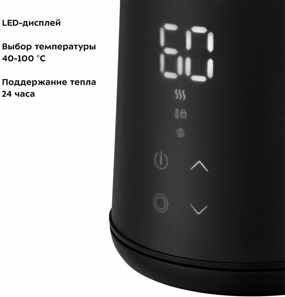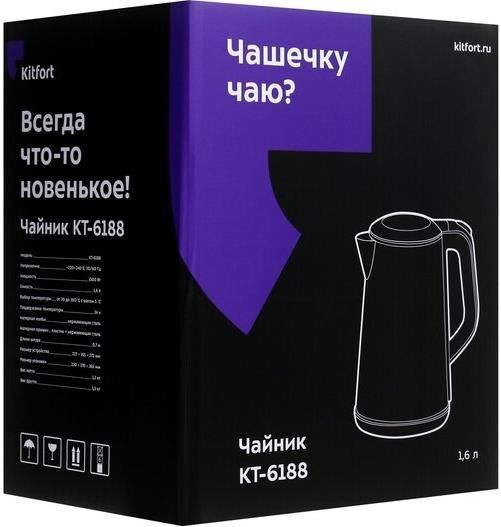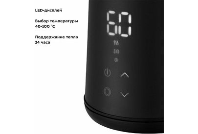 Мощность 1500 Вт. Максимальный объем 1.6 л. Нагревательный элемент скрытый. Индикация включения. Дополнительные функции поддержание температуры, регулировка температуры нагрева Безопасность. автоотключение, защита от включения без воды Конструктивные особенности дисплей, кнопка открытия крышки, подставка 360, фильтр от накипи. Температурные режимы 5 шт.