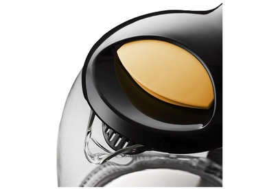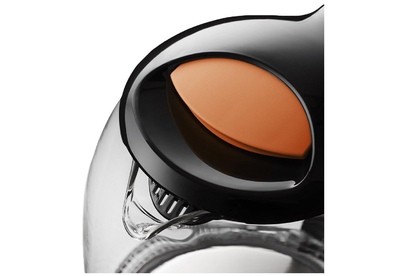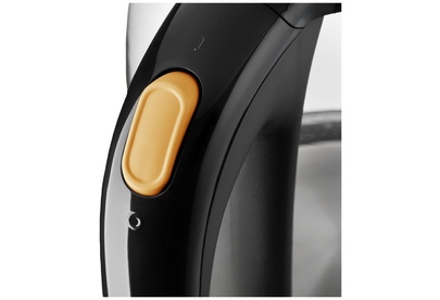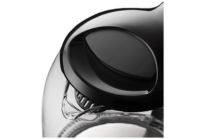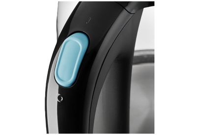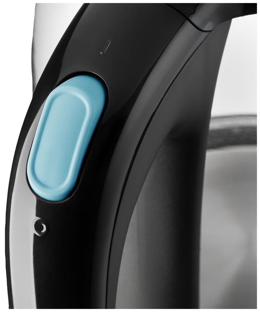Чайник имеет большое горлышко, что облегчает доступ внутрь при мытье. При включении загорается голубая подсветка. Устанавливается чайник на основание в любом положении, так как подключение происходит через центральный контакт.
