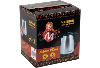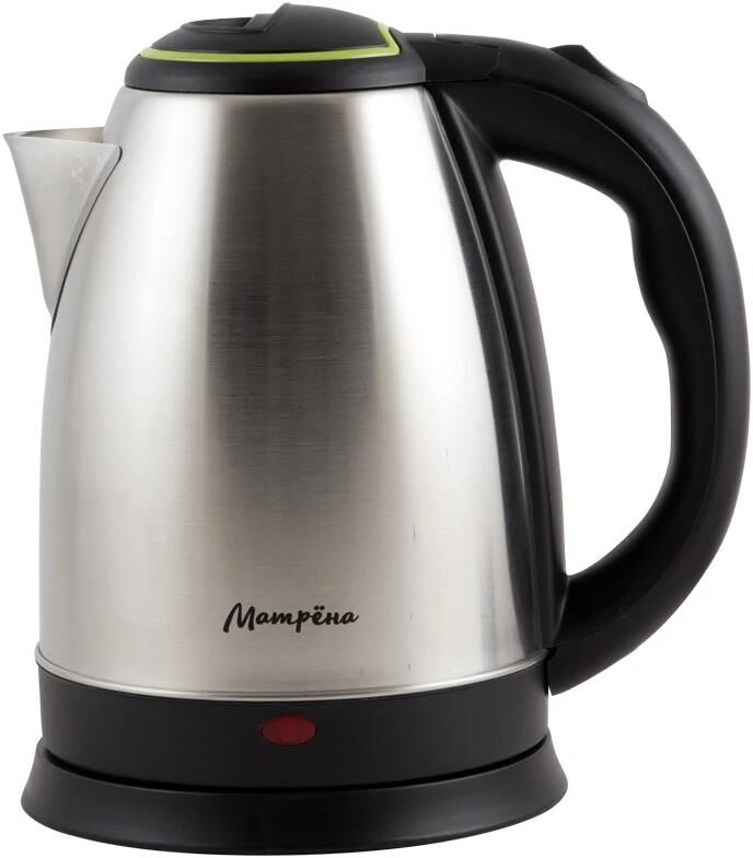 МАТРЁНА MA-001 нержавейка зеленый "Объем: 1,8л Корпус из нержавеющей стали (промо) Автоотключение при закипании Защита от работы без воды Возможность поворота на подставке на 360? Закрытый нагревательный элемент из нержавеющей стали Мощность: 1500Вт Напряжение: 220-240В, 50-60Гц"