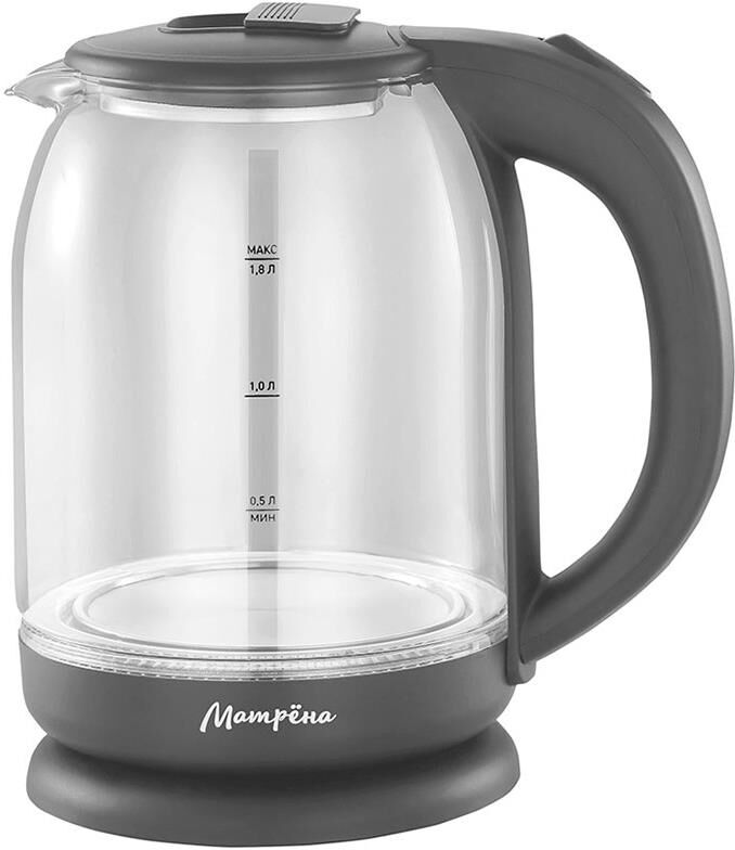 Объем 1,8 л Корпус из термостойкого стекла Шкала уровня воды Внутренняя подсветка Закрытый нагревательный элемент из нержавеющей стали Поворот на подставке 360° Защита от работы без воды Автоматический выключатель Место для хранения шнура Мощность 1500 Вт