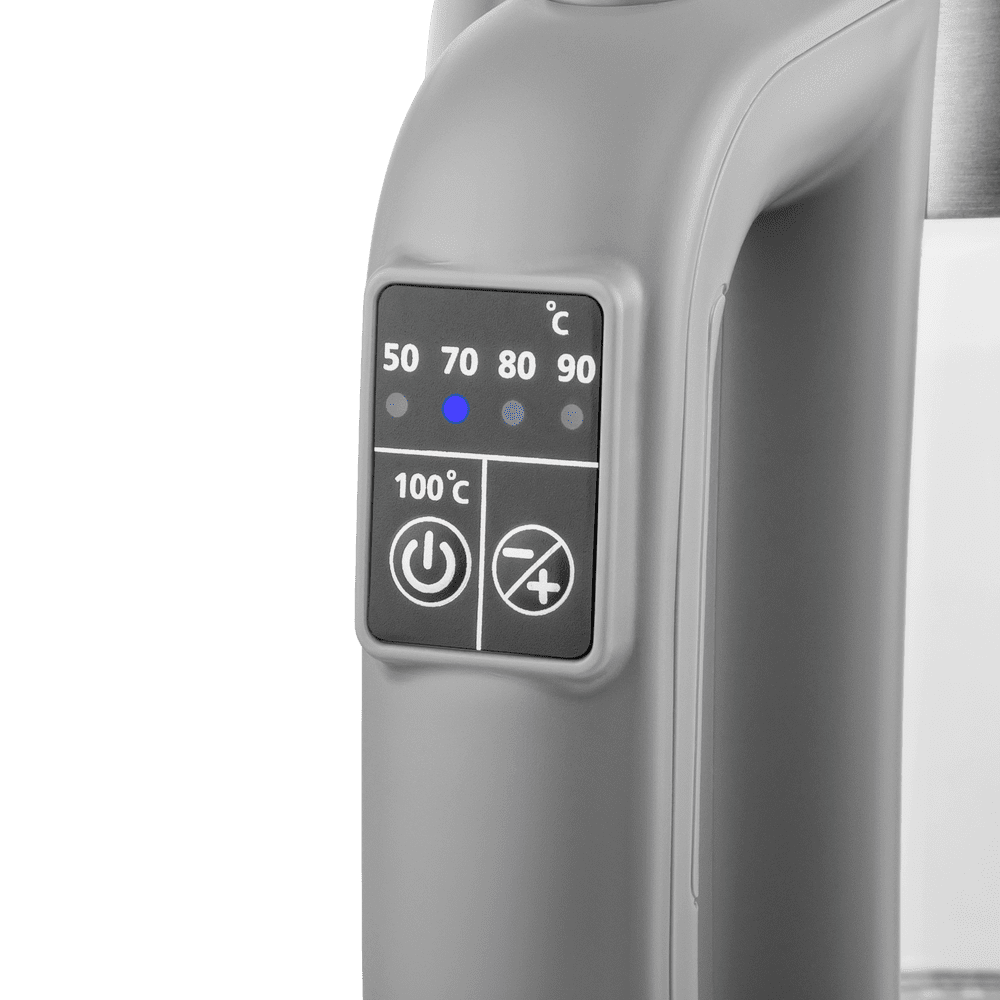 Электрический чайник MAUNFELD MFK-611G в спокойном сером цвете. Поддержание температуры 50/70/80/90/100 градусов позволит использовать прибор для разного вида напитков. Подсветка для каждого режима нагрева (зеленый, голубой, фиолетовый, светло-зеленый, красный) будет стильно смотреться на лубой кухне. Корпус из прочного термо-стекла будет служить долгое время и его легко очистить от загрязнений. Ключевые преимущества: Поддержание температуры 50/70/80/90/100 градусов Подсветка для каждого режима нагрева (зеленый, голубой, фиолетовый, светло-зеленый, красный) Корпус из прочного термо-стекла