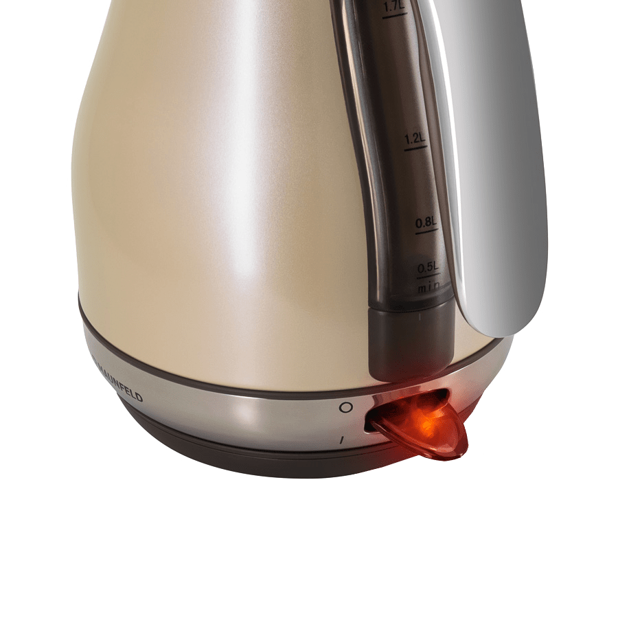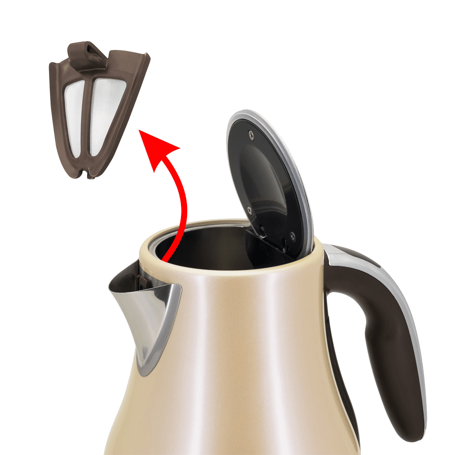 Корпус электрического чайника MAUNFELD MFK-794BG выполнен в нежнейшем бежевом цвете, который с легкостью впишется в любой современный интерьер. Прибор быстро вскипятит или подогреет до 1.7 литра воды. Дополнительная индикация уровня воды, а также съемный фильтр повышают удобство использования. Чайник может поворачиваться на 360 градусов в любую сторону вокруг своей оси. Закрытый нагревательный элемент не контактирует с водой и не подвержен коррозии, что увеличивает долговечность эксплуатации. Ключевые преимущества: Система автоматического открывания крышки Индикация включения на переключателе Съемный фильтр