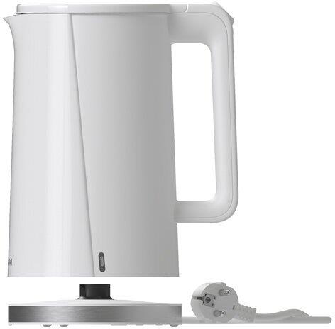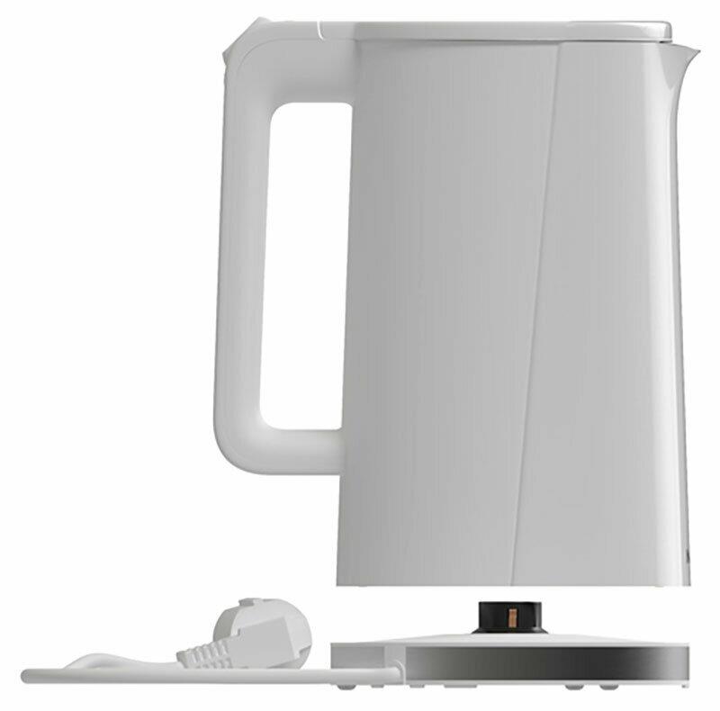 Мощность 1850-2200 Вт, 1.7 литра, двойные стенки (пластик снаружи, сталь внутри), подставка с вращением 360 градусов, световая индикация, автоотключение, скрытый нагревательный элемент.