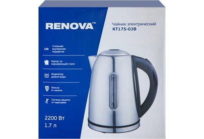 1,7 л. Нержавеющая сталь. Мощность 2200 Вт. Закрытый нагревательный элемент. Защита от включения без воды. Защита от перегрева. Фильтр от накипи. Габариты изделия/упаковки 209.3 * 157.9 * 238.8/21.5*17*23. Вес нетто/брутто 1,08/1,18