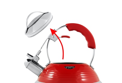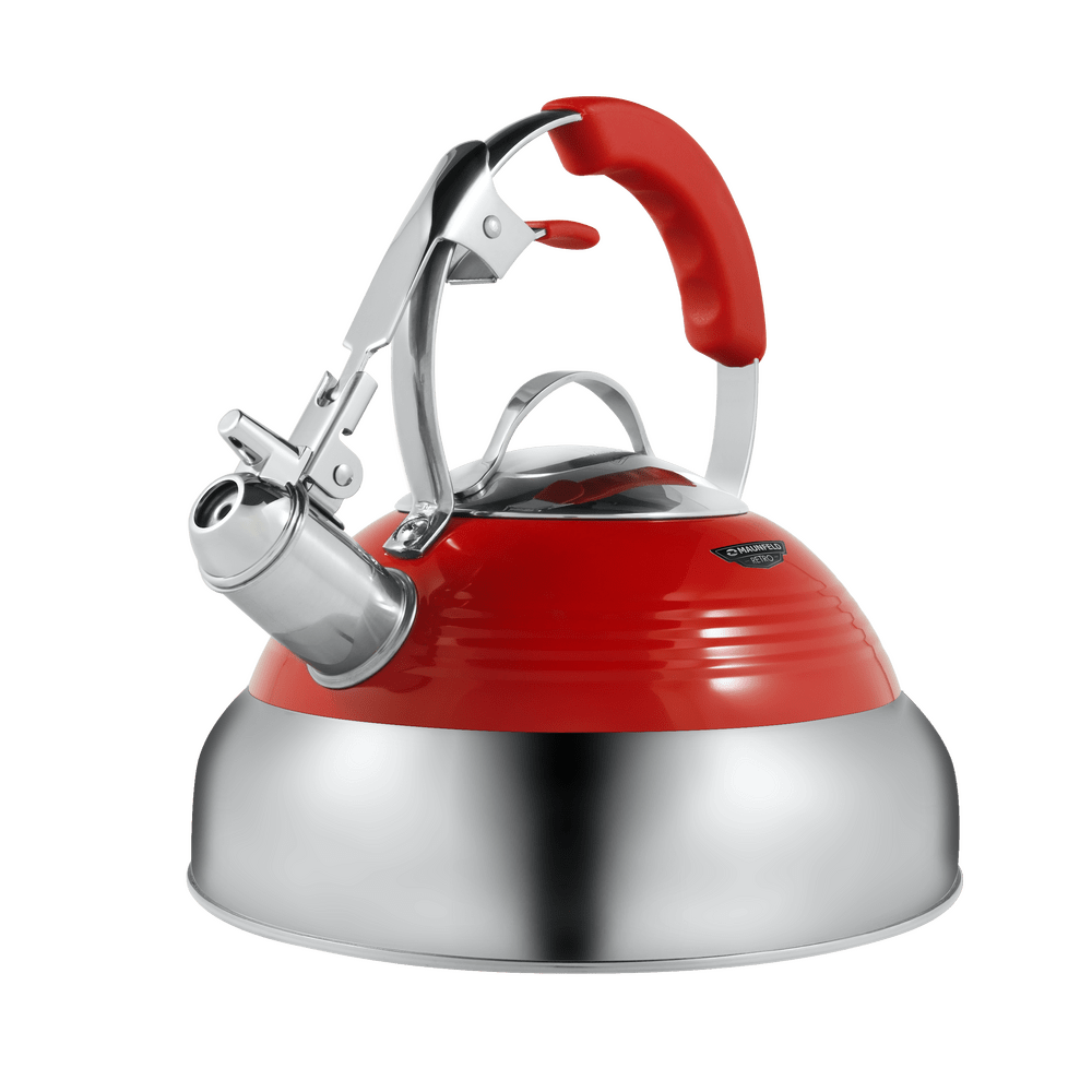 Maunfeld MRK-119R — это металлический чайник со свистком из коллекции «Retro». Подходит для использования на любых варочных поверхностях. Материал корпуса —нержавеющая сталь и алюминий, материал свистка — сплав цинка. Ручка также выполнена из металла (нержавеющей стали) и имеет накладку из термостойкого пластика. Ключевые преимущества: Ретро-дизайн Свисток Металлический корпус