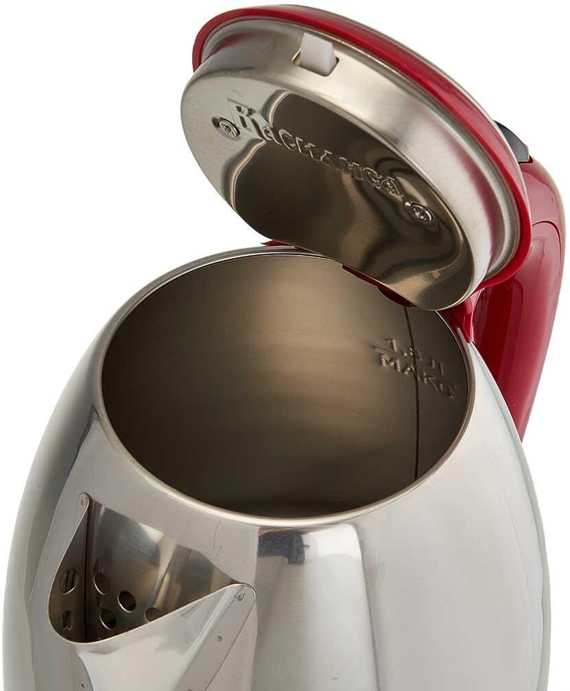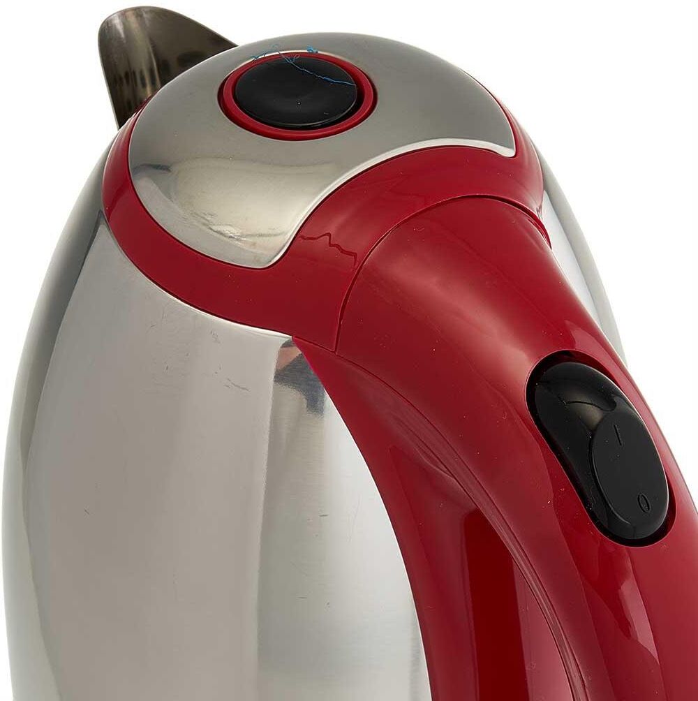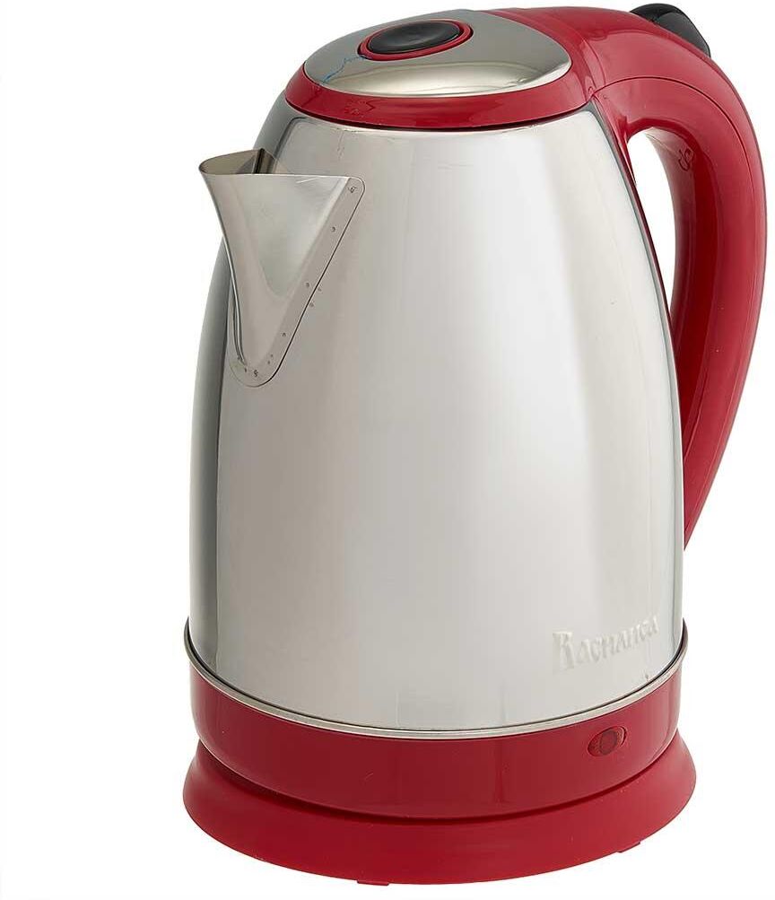 Объем 1,8 л. Номинальная потребляемая мощность 2000 Вт, Закрытый нагревательный элемент из нержавеющей стали, Корпус из нержавеющей стали, Вращение корпуса на 360°, Световой индикатор работы, Внутренняя шкала уровня воды, Удобное хранение электрошнура, Многоуровневая защита: автоматическое отключение при закипании, отключение при снятии чайника с базы, отключение при недостаточном количестве воды, Цвет: красный .