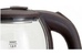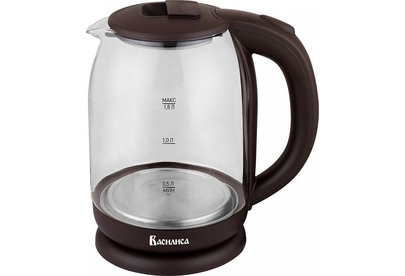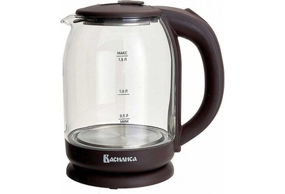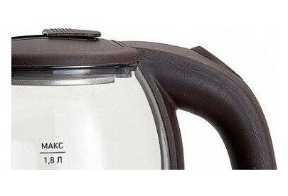 Объем 1,8 л. Номинальная потребляемая мощность 1500 Вт. Корпус из высококачественного термостойкого стекла. Закрытый нагревательный элемент из нержавеющей стали. Вращение корпуса на 360°. Цвет: коричневый. Шкала уровня воды. Внутренняя LED-подсветка. Отсек для хранения электрошнура. Автоматическое отключение при закипании. Блокировка включения без воды.