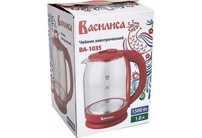 ВАСИЛИСА ВА-1035 стекло бордовый Параметры Объем 1,8 л Номинальная потребляемая мощность 1500 Вт Описание Корпус из высококачественного термостойкого стекла Закрытый нагревательный элемент из нержавеющей стали Вращение корпуса на 360° Цвет: бордовый Шкала уровня воды Внутренняя LED-подсветка Отсек для хранения электрошнура Автоматическое отключение при закипании Блокировка включения без воды Упаковка: цветная коробка