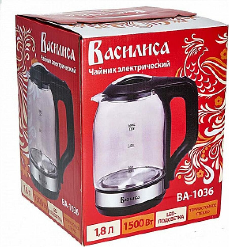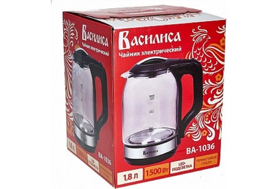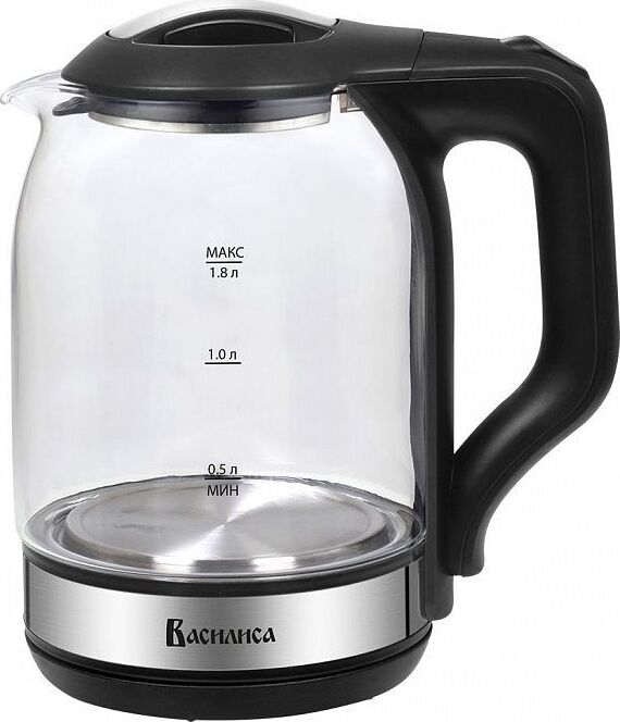 Объем 1,8 л. Номинальная потребляемая мощность 1500 Вт. Корпус из высококачественного термостойкого стекла. Закрытый нагревательный элемент из нержавеющей стали. Вращение корпуса на 360°. Цвет: черный. Шкала уровня воды. Внутренняя LED-подсветка. Отсек для хранения шнура питания. Автоматическое отключение при закипании. Блокировка включения без воды.