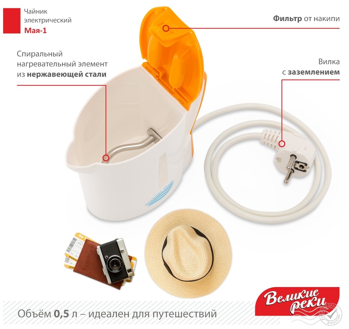 Объём 0,5 л.Корпус из первичного пластика.Спиральный нагревательный элемент из нержавеющей стали.Шкала уровня воды.Мощность 500 Вт.Рабочее напряжение 220-240 В.Частота сети питания 50-60 Гц.Класс защиты: I.Размер прибора: 123х123х140мм (ШхГхВ).Размер прибора в упаковке: 123х123х140 мм (ШхГхВ) Размер транс.упак.: 390х260х310 мм.
