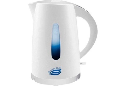 Корпус из первичного пластика.Защита от включения без воды.Автоматический и ручной выключатель с индикацией работы чайника.Поворот на подставке 360° Автоматическое отключение при снятии с подставки.Дисковый нагревательный элемент из высококачественной нержавеющей стали.Отсек для хранения шнура Объем 1,7 л.