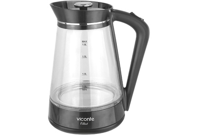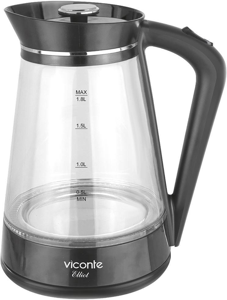 Электрочайник Viconte VC-3338 1,8 л, Электрочайник, 2200 Вт, 1,8 литра, корпус из высококачественного термостойкого стекла, закрытый нагревательный элемент, ВОЗМОЖНОСТЬ ВРАЩЕНИЯ ЧАЙНИКА НА 360°, LED подсветка, шкала уровня воды, автоматическое отключение при закипании, автоматическое отключение без воды.