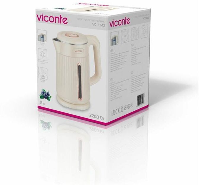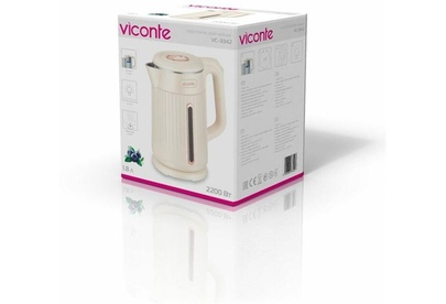 Электрочайник Viconte VC-3341 1,5 л, Электрочайник, 2200 Вт, 1,5 литра, закрытый нагревательный элемент, ВОЗМОЖНОСТЬ ВРАЩЕНИЯ ЧАЙНИКА НА 360°, корпус с двойными стенками из высококачественной нержавеющей стали и пластика, встроенный термометр, световой индикатор работы, автоматическое отключение при закипании, автоматическое отключение без воды.
