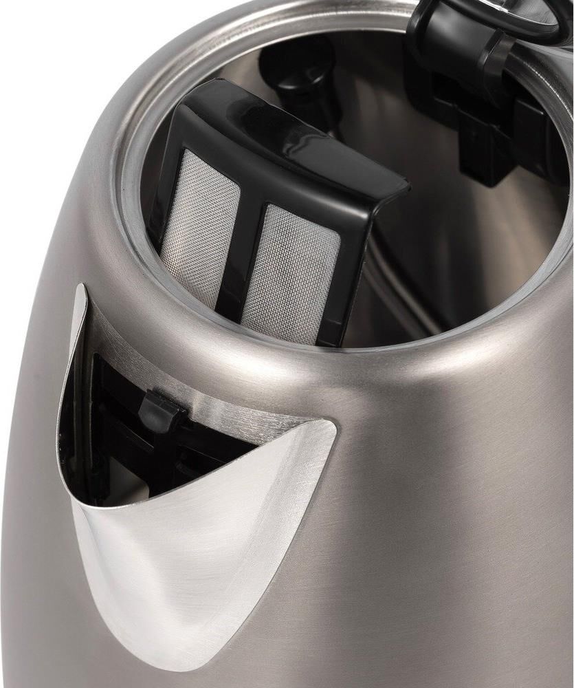 Мощность 2150Вт. Объем 1,7л. Материал корпуса сталь. Тип нагревательного элемента скрытый. Шкала уровня воды. Блокировка включения без воды. Индикация включения. Фильтр из нейлона. Контроллер Strix. Подсветка.
