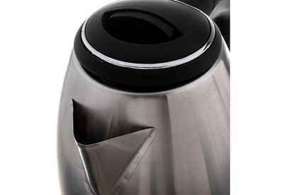Объем 1,8 л, Номинальная потребляемая мощность 1500 Вт, Вращение корпуса на 360°, Цвет базы, крышки и ручки: черный, Закрытый нагревательный элемент из нержавеющей стали, Отметка максимального уровня воды внутри корпуса, Световой индикатор работы, Отсек для хранения электрошнура, Автоматическое отключение при закипании, Блокировка включения без воды.