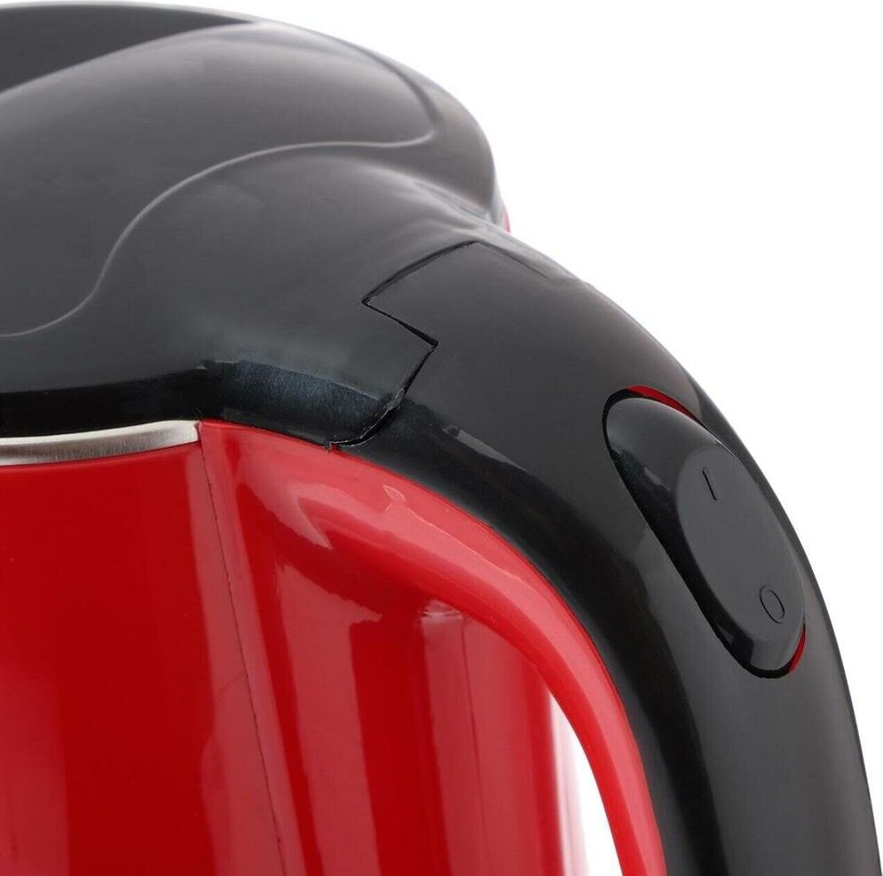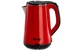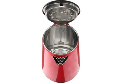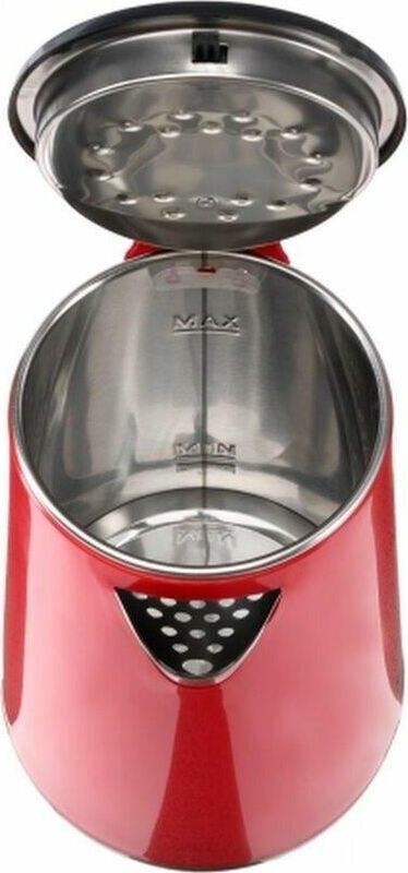 Объем 1,8 л. Номинальная потребляемая мощность 1500 Вт. Чайник электрический предназначен для нагревания воды в бытовых и аналогичных условиях. Двухслойный корпус: внутренняя колба из высококачественной нержавеющей стали и внешний корпус из пластика. Цвет: красный с черным. Закрытый нагревательный элемент из нержавеющей стали. Вращение корпуса на 360°. Отметка максимального и минимального уровня воды внутри корпуса. Световой индикатор работы. Отсек для хранения электрошнура. Автоматическое отключение при закипании. Блокировка включения без воды.