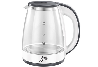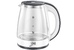 Корпус из термостойкого стекла. Объем 1,8 литра. Иллюминация. Специальная ручка от скольжения. Поворот на подставке на 360°. Быстрое закипание. Фильтр от накипи . Закрытый нагревательный элемент. Автоматическое отключение. Защита от перегрева без воды. Электрошнур в цокольной подставке, 48см. Номинальная мощность 1500 Вт. 230 B ~ 50 Гц.