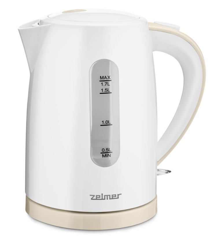 Чайник электрический ZELMER Мощность - 2200Вт, ёмкость - 1.7л., фильтр, индикатор уровня воды, световой индикатор, вращающаяся база 360; пластик.