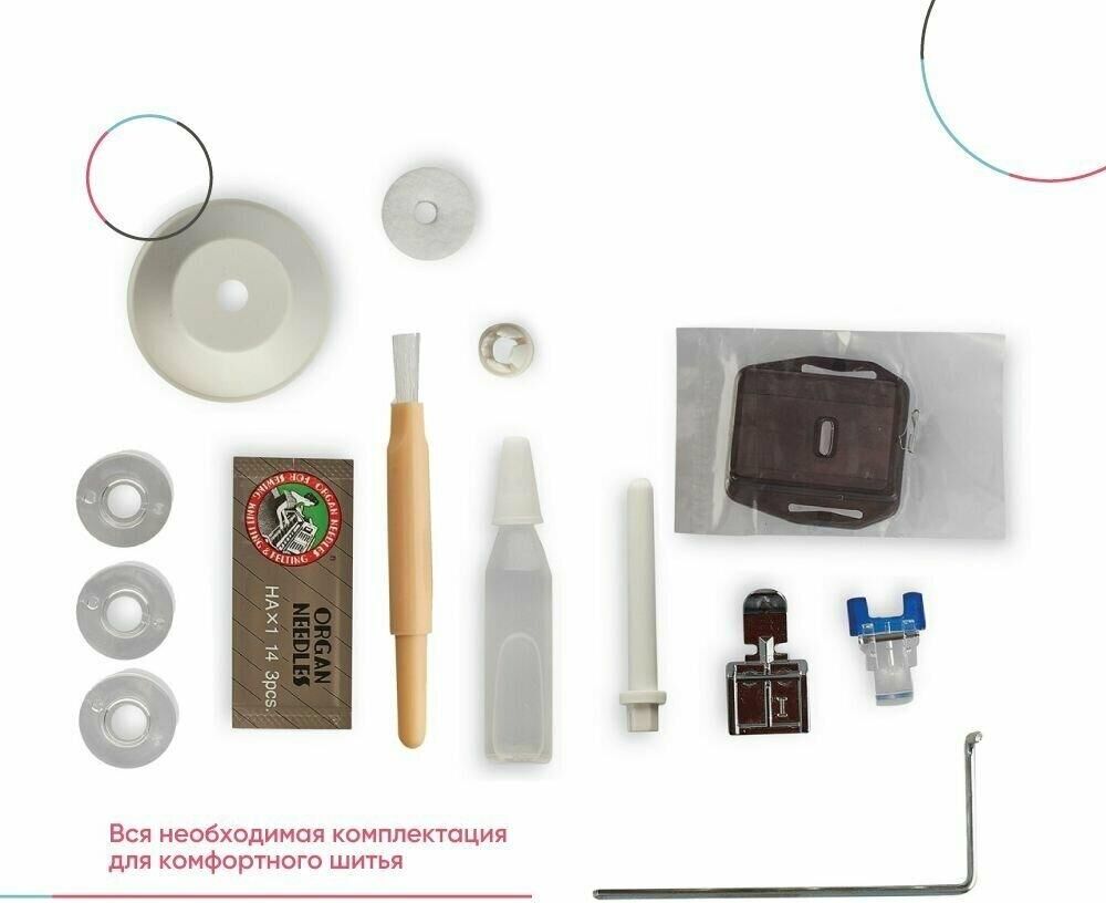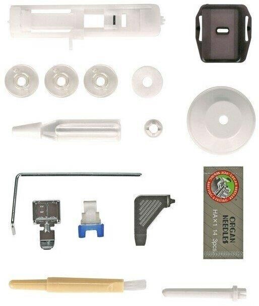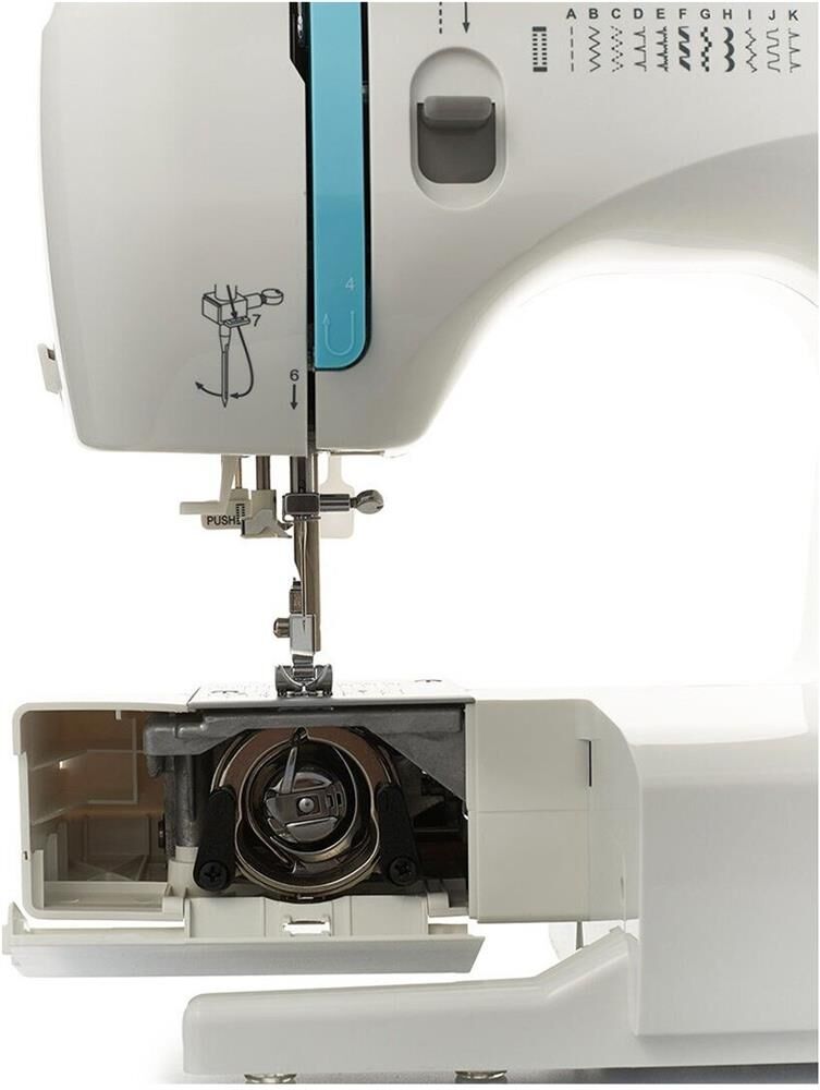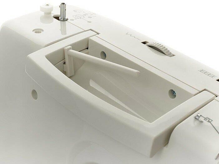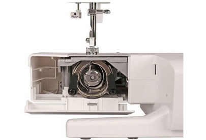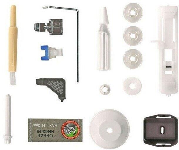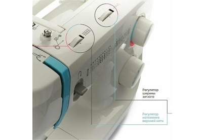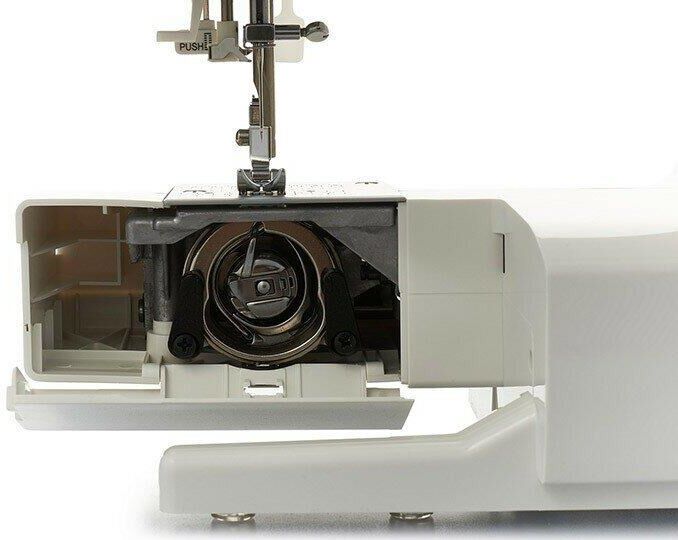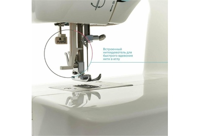 23 операции: прямая строчка, зигзаг, потайные строчки, декоративные строчки, трикотажные строчки, оверлочные строчки, строчки для квилтинга, петля-авт.; вертик. челнок; съёмная рукавная панель; нитевдеватель; регулятор ширины зигзага; мягкий чехол