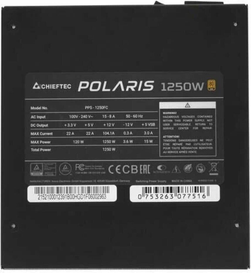 CHIEFTEC Блок питания Polaris PPS-1250FC, 1250Вт, 80 PLUS GOLD, 140мм, черный, retail