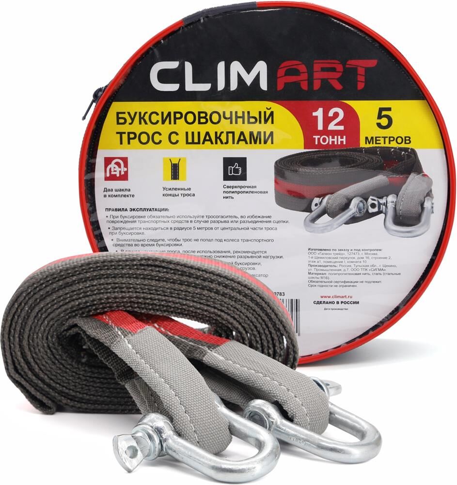 CLIM ART Трос буксировочный с шаклами CA 12т, 5м в сумке