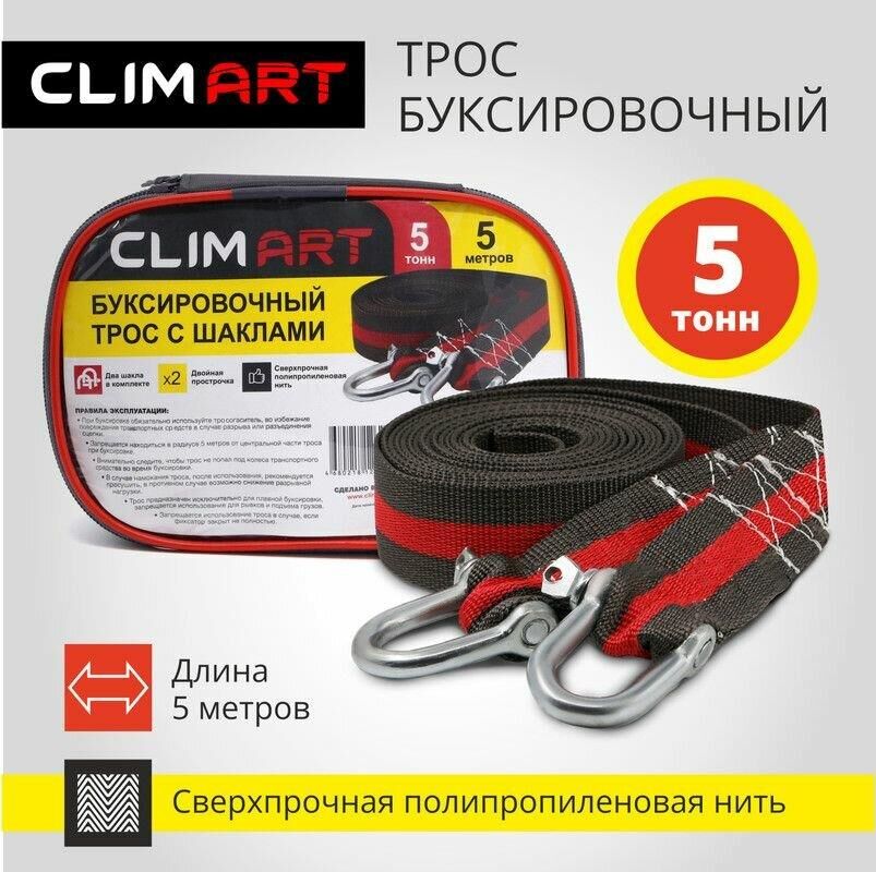 CLIM ART Трос буксировочный с шаклами CA 5т, 5м в сумке