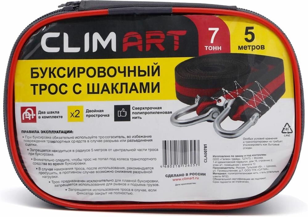 CLIM ART Трос буксировочный с шаклами CA 7т, 5м в сумке