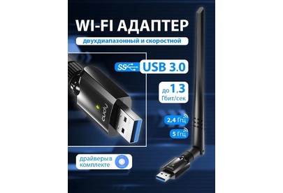 Wi-Fi USB 3.0 Адаптер AC1300, 1300 Мбит/с с высоким коэффициентом усиления, 802.11ac/a/b/g/n, 867 Мбит/с на 5 ГГц + 400 Мбит/с на 2,4 ГГц, 1 съемная антенна с высоким коэффициентом усиления, USB 3.0