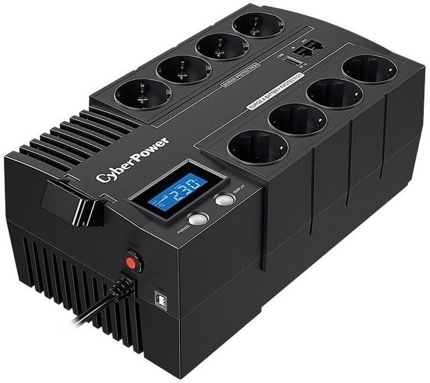 **ИБП CyberPower BR700ELCD Line-Interactive 420W/700VA** — это источник бесперебойного питания, который обеспечивает надёжную защиту электрооборудования от скачков напряжения и отключения электроэнергии. **Основные характеристики**: * мощность: 700 ВА (420 Вт); * тип: линейно-интерактивный; * форма выходного сигнала: аппроксимированная синусоида; * количество выходных разъемов питания: 6 (из них с питанием от батарей — 3); * интерфейсы: USB, RS-232; * время зарядки: 8 часов. Этот ИБП подходит для использования в домашних условиях или в небольших офисах. Он может защитить компьютер, роутер, модем, небольшую серверную станцию и другое оборудование от проблем с электропитанием. Благодаря компактным размерам и небольшому весу, устройство легко устанавливается на столе или крепится к стене. ИБП имеет ЖК-дисплей, на котором отображается информация о состоянии устройства и электросети. Также он оснащён звуковой сигнализацией, которая оповещает пользователя о различных событиях, таких как отключение электричества или