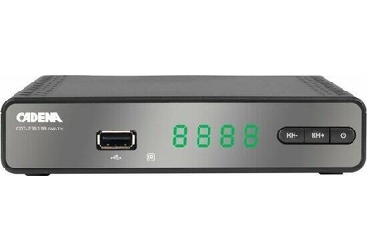 Приемник цифровой эфирный CADENA CDT-2351SB с LED-дисплеем, со встроенным тюнером DVB-T2, корпус ABS. Предназначен для приема открытых каналов эфирного вещания высокой четкости. В приемник встроен USB мультимедиа интерфейс, с помощью которого вы можете проигрывать/прослушивать музыку, фото, видеофайлы. Имеет полный набор стандартных операций: запись телепередач и запись события по расписанию на USB носитель; отложенный просмотр; телетекст; телегид; родительский контроль.