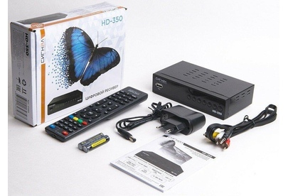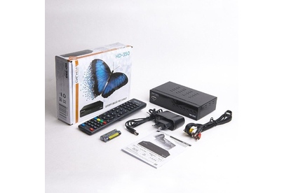 Особенность этого ресивера в возможности подключения к интернету с помощью LAN порта. Можно напрямую подсоединить кабель, установив сетевое соединение. Также в приставке есть IR разъем, который позволяет подключить выносной инфракрасный датчик для управления с ДУ-пульта ресивером, скрытым из виду. На ресивере расположены следующие разъемы: антенный вход, 2 USB-разъема, HD OUT, композитный аудио-видео выход, IR, LAN, разъем для подключения внешнего блока питания. Также на переднем дисплее есть кнопки управления громкостью, М - выход в меню и кнопка ОК.HD-350 оснащен чипсетом GX6702, поддерживает диапазон частот 174-862МГц. Поддержка DOLBY DIGITAL. Также вы можете наслаждаться видео с разрешением до 1080p.Корпус из металла, размер 148*80*35 мм. Рабочая мощность составляет 7,5Вт, входное напряжение 220В 50ГЦ, БП 5В 2А.Товар сертифицирован. В комплектацию HD-350 входит: ресивер цифровой, обучаемый пульт ДУ, э/п ААА -2шт, шнур 3RCA-3.5Jack, инструкция, гарантийный талон и внешний блок питания