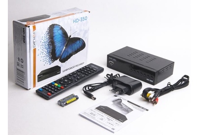 Особенность этого ресивера в возможности подключения к интернету с помощью LAN порта. Можно напрямую подсоединить кабель, установив сетевое соединение. Также в приставке есть IR разъем, который позволяет подключить выносной инфракрасный датчик для управления с ДУ-пульта ресивером, скрытым из виду. На ресивере расположены следующие разъемы: антенный вход, 2 USB-разъема, HD OUT, композитный аудио-видео выход, IR, LAN, разъем для подключения внешнего блока питания. Также на переднем дисплее есть кнопки управления громкостью, М - выход в меню и кнопка ОК.HD-350 оснащен чипсетом GX6702, поддерживает диапазон частот 174-862МГц. Поддержка DOLBY DIGITAL. Также вы можете наслаждаться видео с разрешением до 1080p.Корпус из металла, размер 148*80*35 мм. Рабочая мощность составляет 7,5Вт, входное напряжение 220В 50ГЦ, БП 5В 2А.Товар сертифицирован. В комплектацию HD-350 входит: ресивер цифровой, обучаемый пульт ДУ, э/п ААА -2шт, шнур 3RCA-3.5Jack, инструкция, гарантийный талон и внешний блок питания